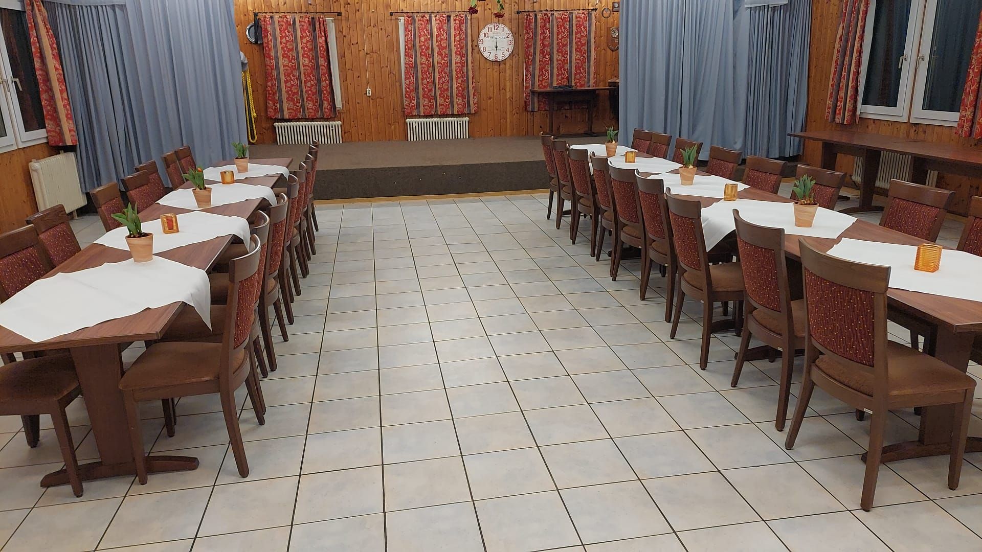 In unserem Saal mit Bühne finden bis zu 80 Personen Platz.